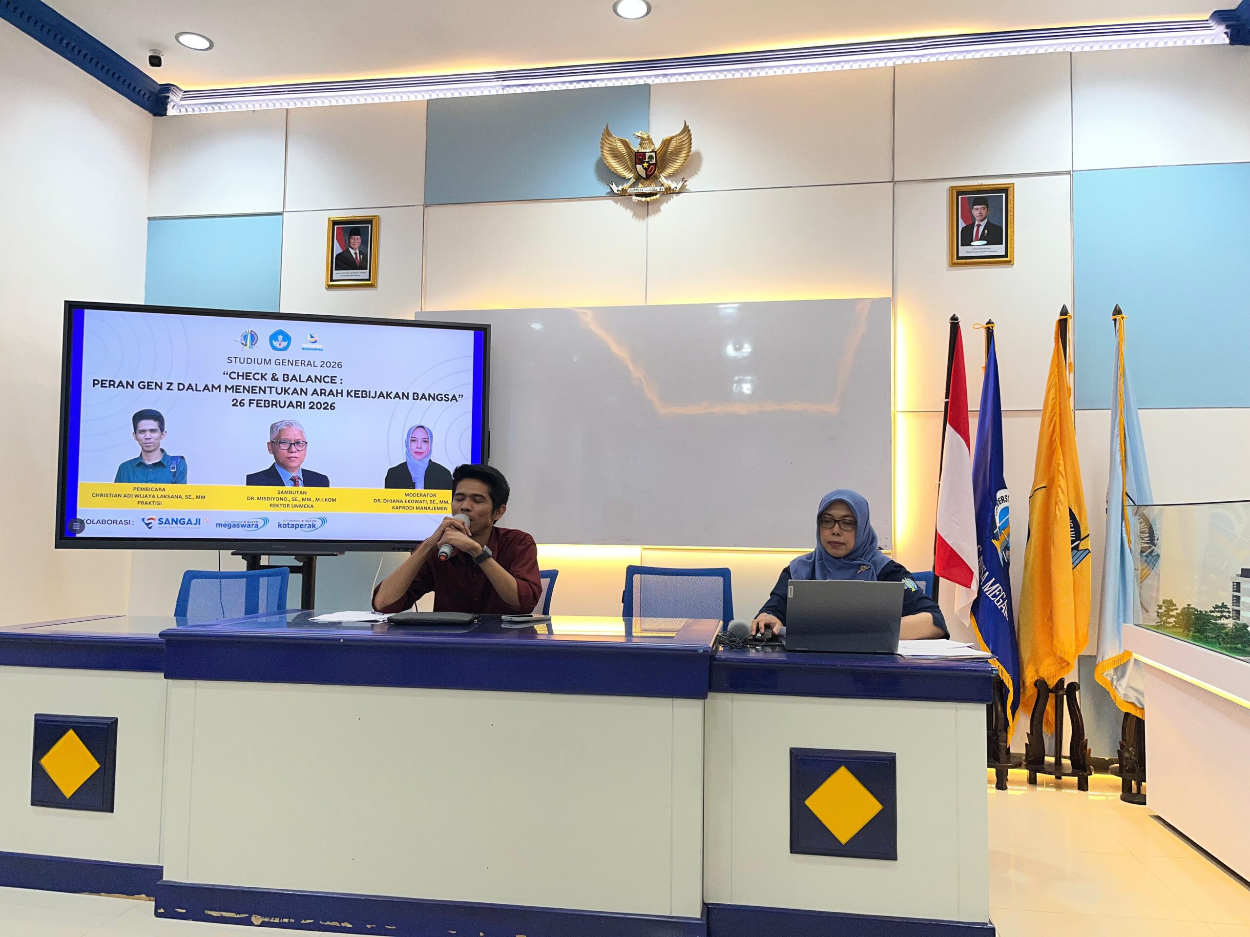 Yogyakarta, 26 Februari 2026 – Universitas Nusa Megarkencana (UNMEKA) sukses menyelenggarakan kegiatan Studium General 2026 dengan tema “Check & Balance: Peran Gen Z dalam Menentukan Arah Kebijakan Bangsa” pada Rabu, 26 Februari 2026. Kegiatan ini berlangsung secara luring di Auditorium kampus UNMEKA serta disiarkan secara daring, sehingga dapat diikuti oleh mahasiswa dan peserta dari berbagai daerah.