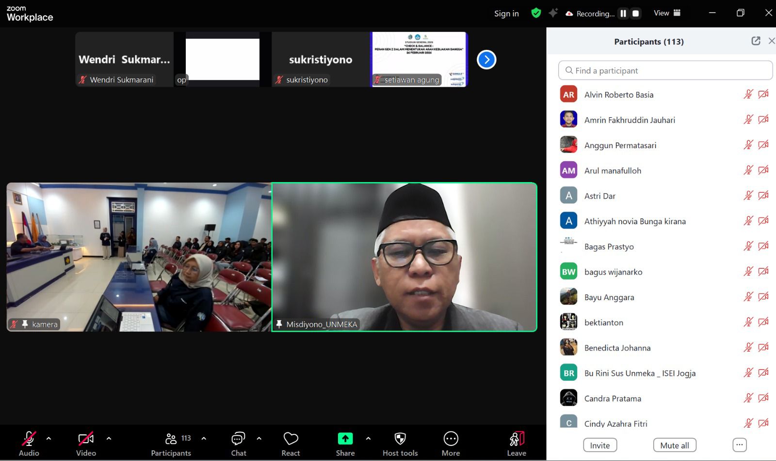 Diskusi dipandu secara interaktif oleh Dr. Dhiana Ekowati, SE., MM., CHRO, selaku moderator yang juga Kaprodi Manajemen UNMEKA. Sesi tanya jawab berlangsung dinamis, baik dari peserta yang hadir secara langsung maupun dari peserta daring yang berpartisipasi melalui platform virtual.